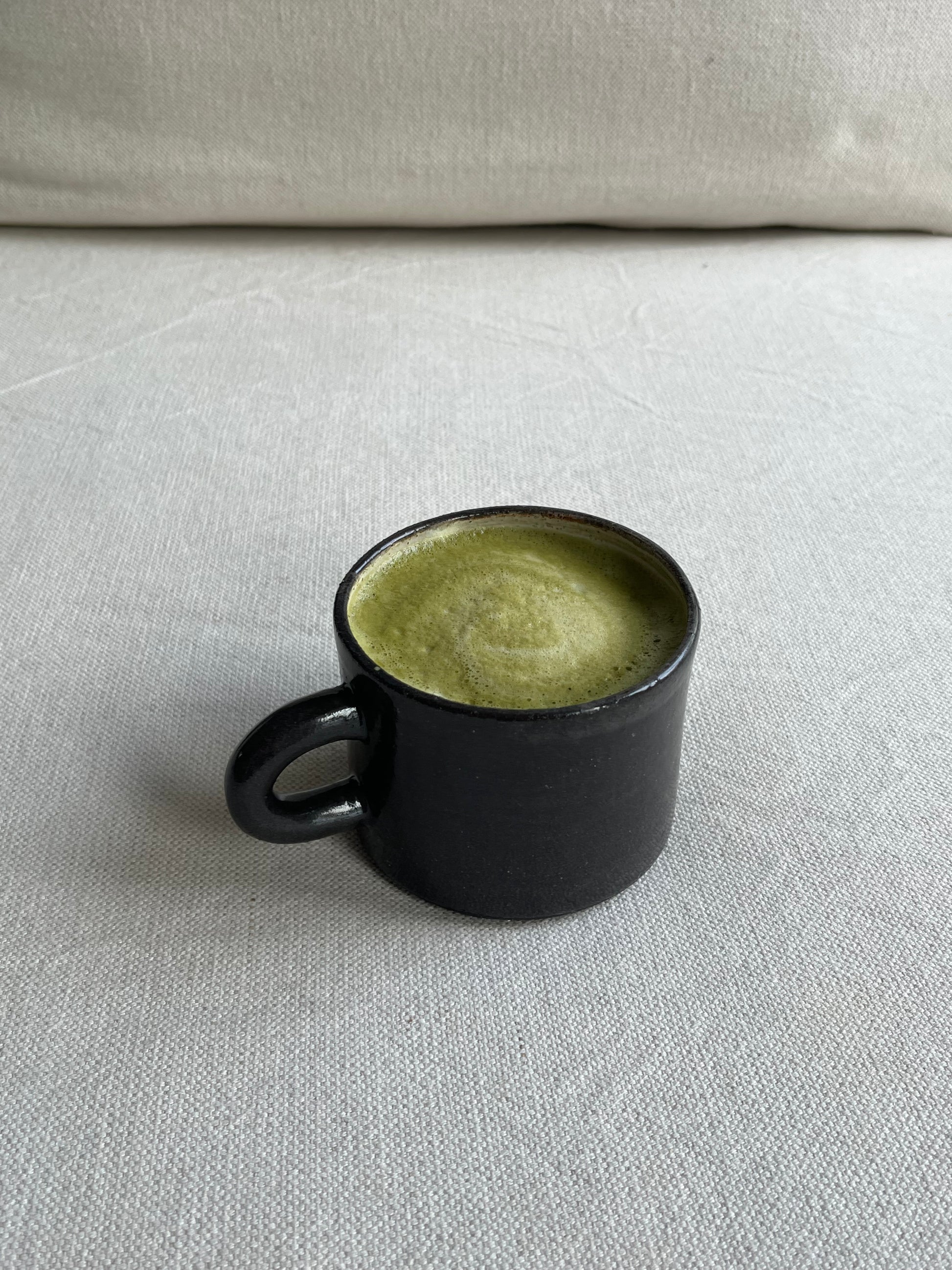 Mug made in black stoneware clay & white glaze inside. Fits a generous cup of tea, coffee, whatever you like.