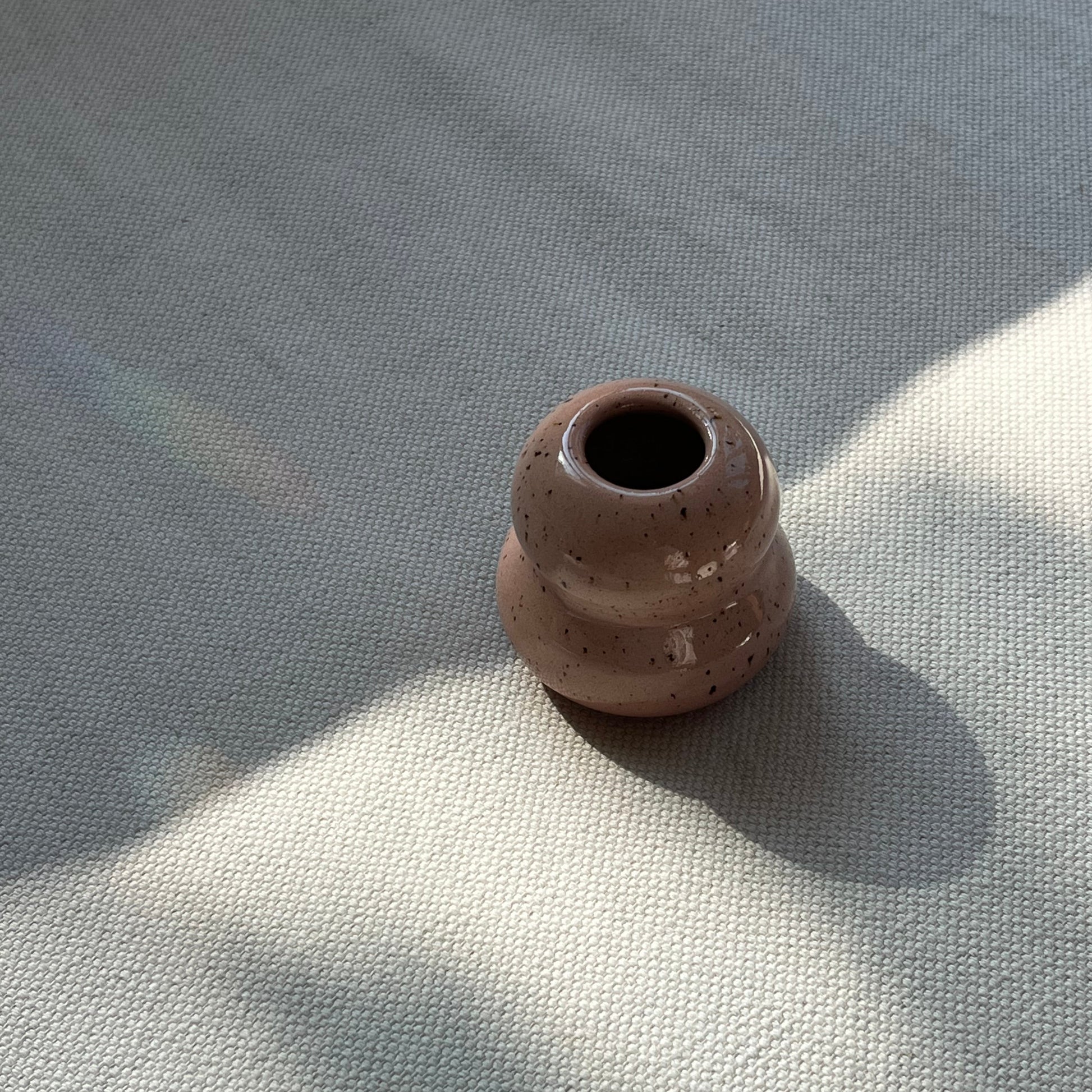A pink matcha whisk holder made from stoneware clay with a double-sphere design. Practical and subtle, it is a gentle companion for your tea ritual.