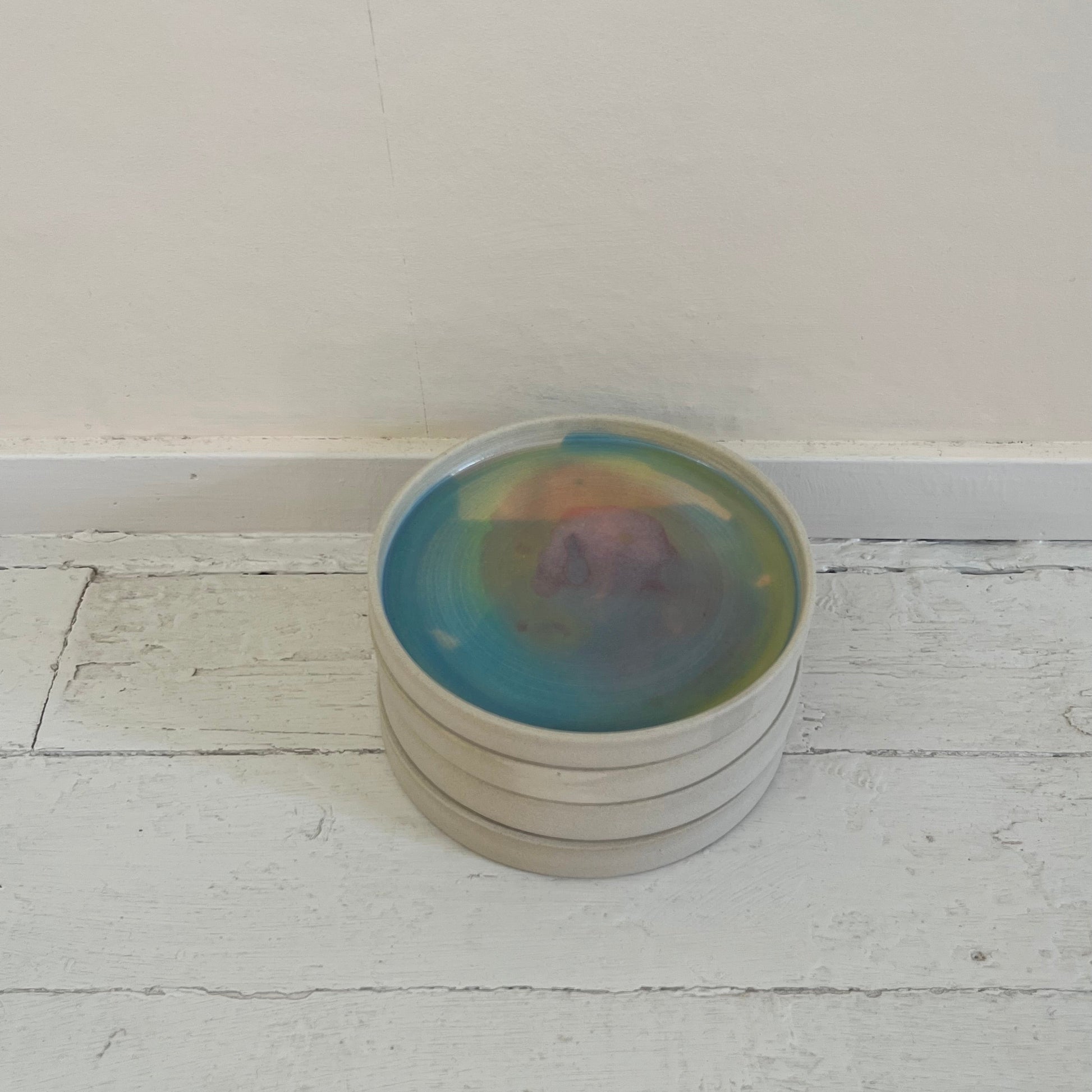 Handmade plate in white stoneware clay, adorned with a free-flowing, watercolor-inspired pattern — each piece truly one of a kind. Perfect for holding jewelry, keys, or other small treasures.